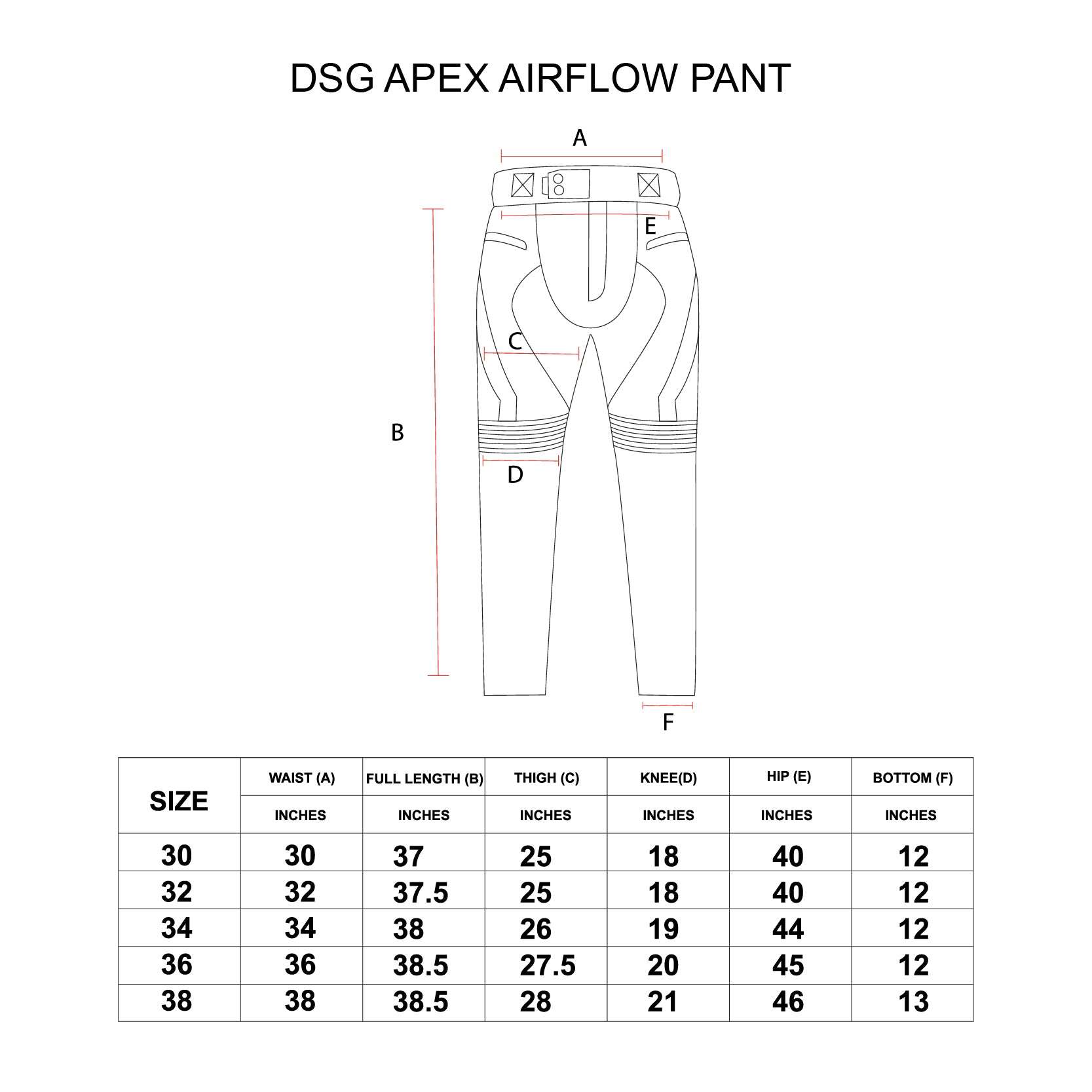 We've left no detail unattended, as robust YKK zippers with easy-to-grab pullers are placed throughout the pant, making it effortless to operate, even when wearing gloves. The DSG Apex Air-Flow Riding Pant is designed to meet the needs of discerning riders, delivering the perfect blend of speed, style, and protection. Experience the future of riding gear with DSG – Where Performance Meets Comfort.